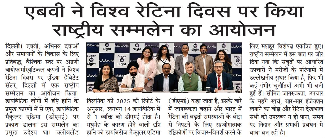 Press Releaseएबवी ने विश्व रेटिना दिवस पर किया राष्ट्रीय सम्मलेन का आयोजन Posted on September 11, 2025December 2, 2025 by Centre For Sight 11 Sep Centre For Sight एबवी ने विश्व रेटिना दिवस पर किया राष्ट्रीय सम्मलेन का आयोजन एबवी ने विश्व रेटिना दिवस पर किया राष्ट्रीय सम्मलेन का आयोजन