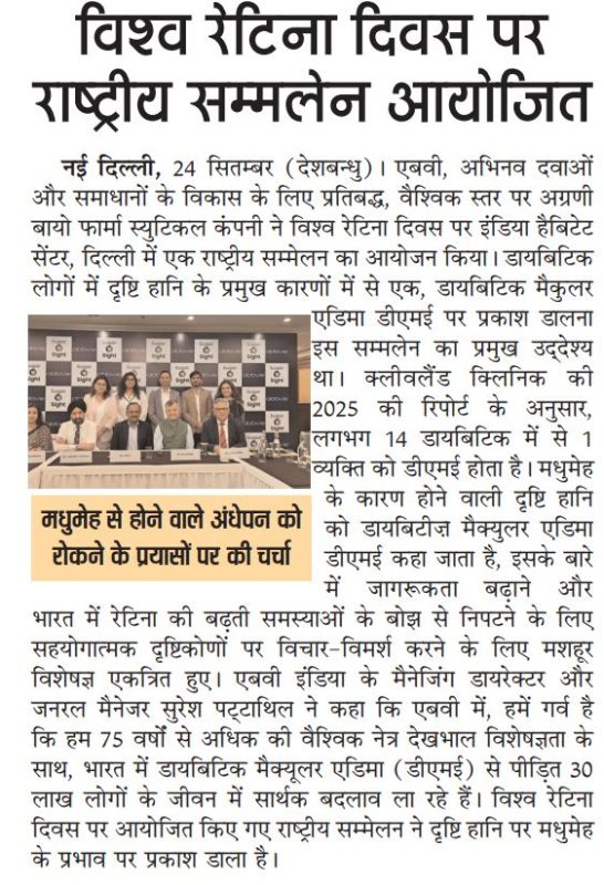 Press Releaseविश्व रेटिना दिवस पर राष्ट्रीय सम्मलेन का आयोजन Posted on September 3, 2025December 2, 2025 by Centre For Sight 03 Sep Centre For Sight प्रिमैच्योर बच्चों में ROP (रेटिनोपैथी ऑफ प्रिमैच्योरिटी): जांच और आधुनिक उपचार विधियाँ विश्व रेटिना दिवस पर डीएमई के बारे में चर्चा