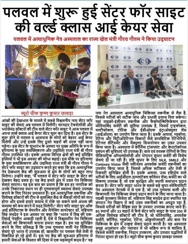 Press Releaseहरियाणा में अब विश्वस्तरीय नेत्र देखभाल – सेन्टर फॉर साइट अब पलवल में Posted on February 26, 2025December 2, 2025 by Centre For Sight 26 Feb Image Grid Centre For Sight How Squint Eyes Can Impact Mental Health and Confidence in Kids AI-Enhanced LASIK Offers Vision Correction in Just 10 Seconds
