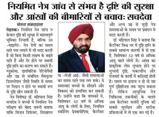 Regular Eye check-ups hold the key to Healthy Vision for All Ages: Dr. Mahipal Singh Sachdev